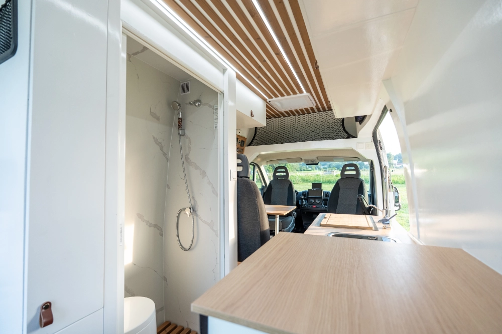 Predstavujeme vám náš pôsobivý obytný automobil Ducato 250 s dĺžkou takmer 6 metrov. Tento dom na štyroch kolesách je premyslene navrhnutý s dvoma alebo štyrmi pohodlnými lôžkami na spanie, pričom praktický systém umožňuje odňať horné lôžko. Priestranná integrovaná kúpeľňa s teplovodnou sprchou a toaletou a priestranný kuchynský kút s chladničkou s mrazničkou. Vydajte sa na nezabudnuteľné cesty v luxusnom obytnom aute.